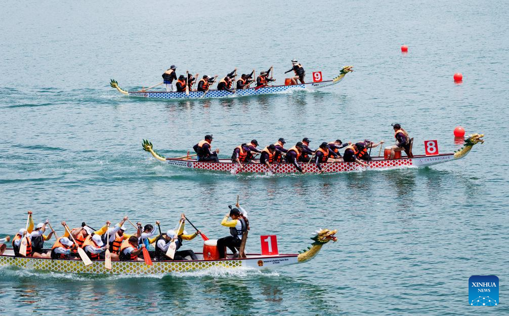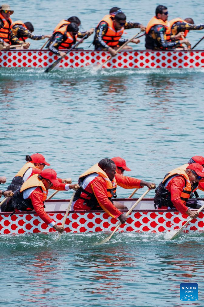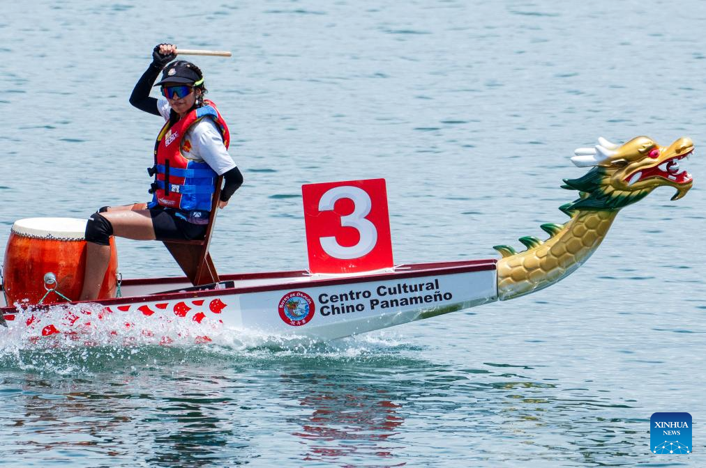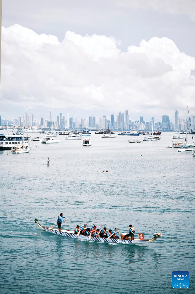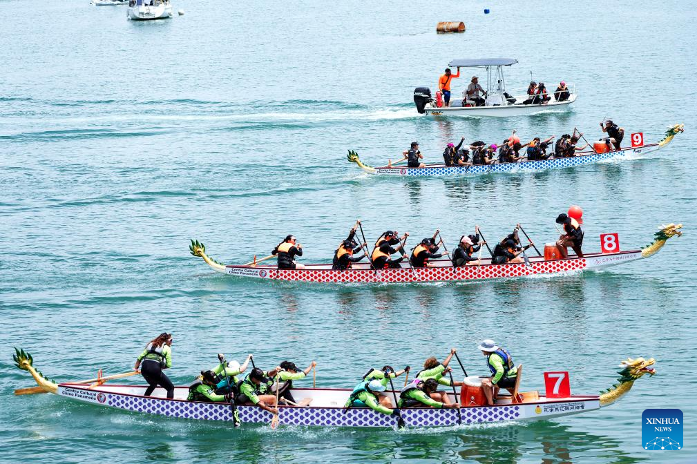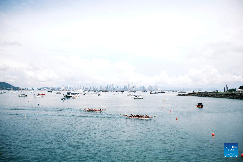 CIUDAD DE PANAMA, 22 septiembre, 2025 (Xinhua) -- Imagen del 21 de septiembre de 2025 de equipos compitiendo en la Carrera de Botes de Dragón, en la Ciudad de Panamá, capital de Panamá. Los panameños realizaron el fin de semana una carrera de botes de dragón en la Ciudad de Panamá para celebrar el 76° aniversario de la fundación de la República Popular China. (Xinhua/Xu Yongzheng)
