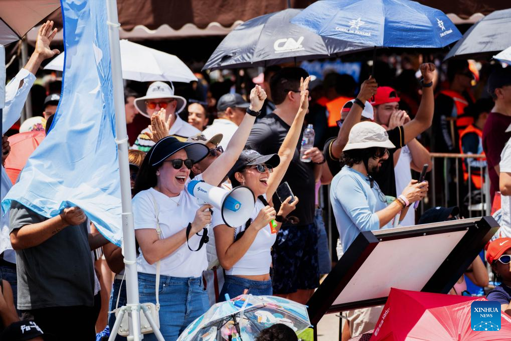 CIUDAD DE PANAMA, 22 septiembre, 2025 (Xinhua) -- Imagen del 21 de septiembre de 2025 de personas animando a participantes durante la Carrera de Botes de Dragón, en la Ciudad de Panamá, capital de Panamá. Los panameños realizaron el fin de semana una carrera de botes de dragón en la Ciudad de Panamá para celebrar el 76° aniversario de la fundación de la República Popular China. (Xinhua/Xu Yongzheng)