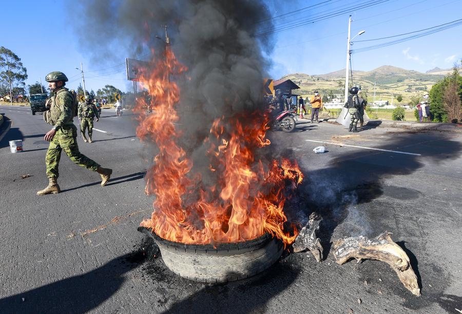 QUITO, 22 sep (Xinhua) -- Ecuador amaneció hoy lunes con varios focos de protesta, que incluyeron el bloqueo de carreteras en varias provincias del país, en el inicio de un paro indefinido convocado por la Confederación de Nacionalidades Indígenas del Ecuador (Conaie), en rechazo a la reciente eliminación del subsidio al diésel.