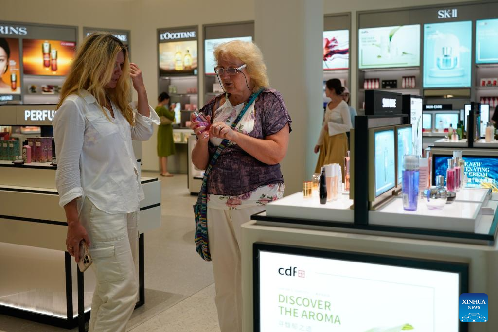 CHENGDU, 25 septiembre, 2025 (Xinhua) -- Turistas extranjeras compran perfume en la Tienda Libre de Impuestos del Centro de Chengdu, en Chengdu, en la provincia de Sichuan, en el suroeste de China, el 25 de septiembre de 2025. La primera tienda libre de impuestos del centro de Chengdu abrió el jueves en el distrito comercial de la calle Chunxi, incluida la zona libre de impuestos y la zona de impuestos pagados. (Xinhua/Xu Bingjie)