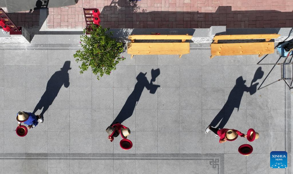 SHIJIAZHUANG, 26 septiembre, 2025 (Xinhua) -- Vista aérea tomada con un dron del 25 de septiembre de 2025 de estudiantes practicando habilidades acrobáticas en el patio acrobático de Zhang Shuo, en el poblado de Sangyuan, en el distrito de Wuqiao, en la provincia de Hebei, en el norte de China. Wuqiao, conocida como la cuna del arte acrobático chino, cuenta con 14 "patios acrobáticos" diferentes que sirven como un conjunto de bases para la formación de artistas, el diseño de nuevas obras y la investigación del arte popular. (Xinhua/Mu Yu)