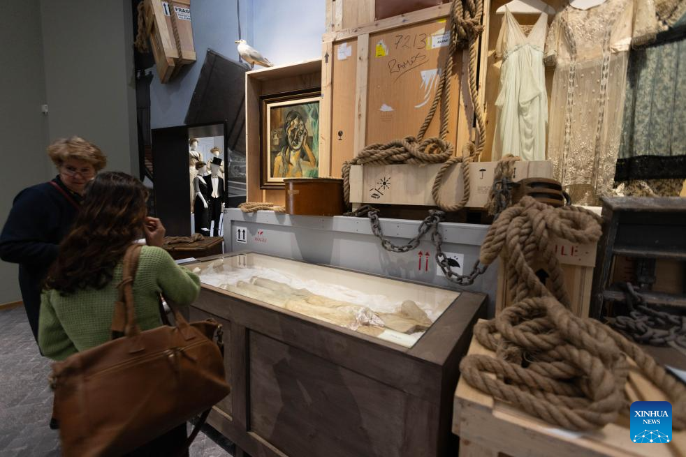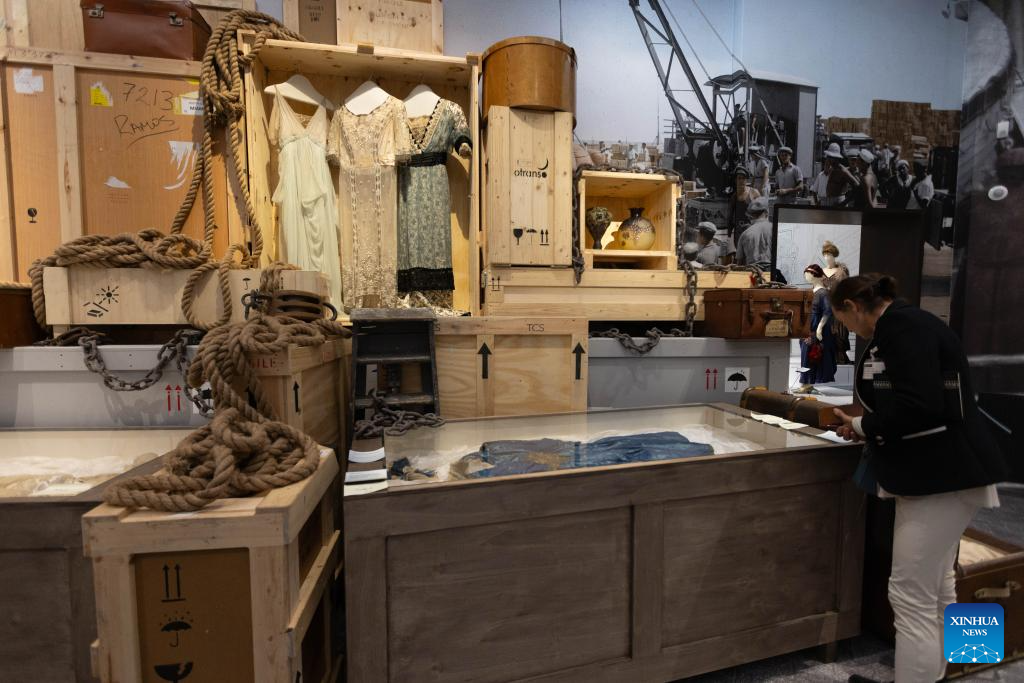 LA HAYA, 27 septiembre, 2025 (Xinhua) -- Imagen del 25 de septiembre de 2025 de una visitante observando las exhibiciones durante un vista previa para los medios de comunicación de la exposición "Titanic & Moda: El Ultimo Baile", en La Haya, Países Bajos. La exposición, que estará abierta al público desde el sábado hasta el 25 de enero de 2026, reúne alrededor de 15 trajes originales de la película "Titanic", ganadora del Oscar en 1997, prendas históricas poco comunes de la década de 1910 procedentes de la colección del museo y obras modernas de unos 25 diseñadores contemporáneos. (Xinhua/Sylvia Lederer)