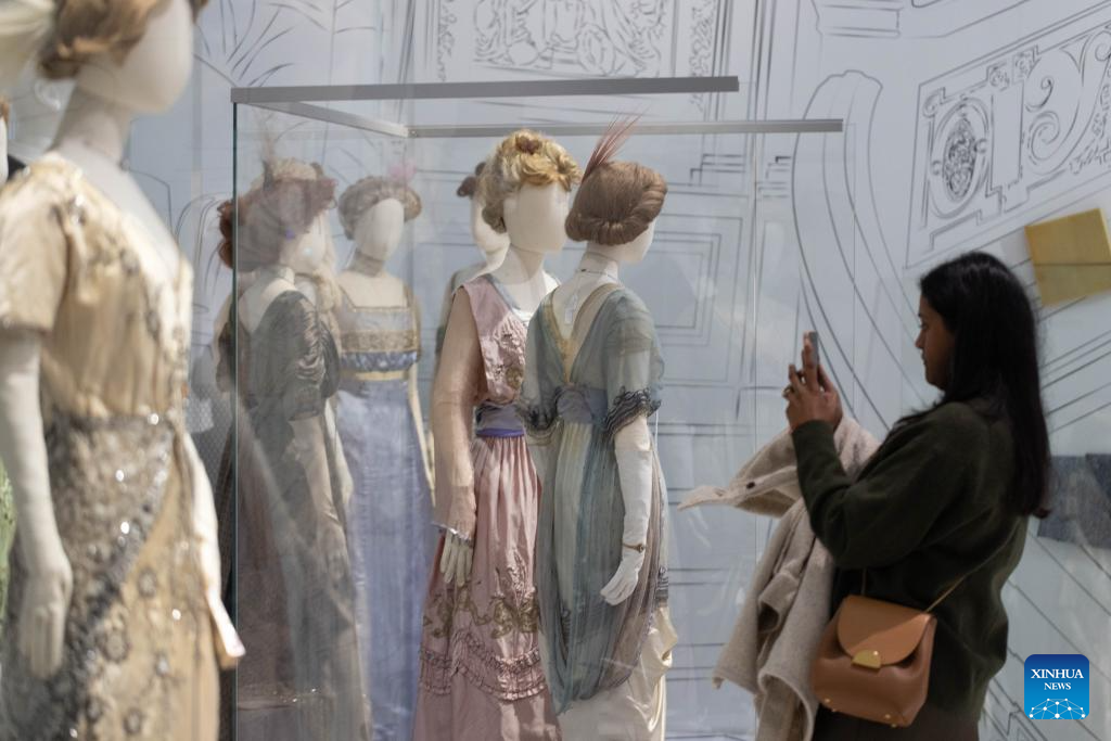 LA HAYA, 27 septiembre, 2025 (Xinhua) -- Imagen del 25 de septiembre de 2025 de una visitante observando trajes expuestos durante un vista previa para los medios de comunicación de la exposición "Titanic & Moda: El Ultimo Baile", en La Haya, Países Bajos. La exposición, que estará abierta al público desde el sábado hasta el 25 de enero de 2026, reúne alrededor de 15 trajes originales de la película "Titanic", ganadora del Oscar en 1997, prendas históricas poco comunes de la década de 1910 procedentes de la colección del museo y obras modernas de unos 25 diseñadores contemporáneos. (Xinhua/Sylvia Lederer)