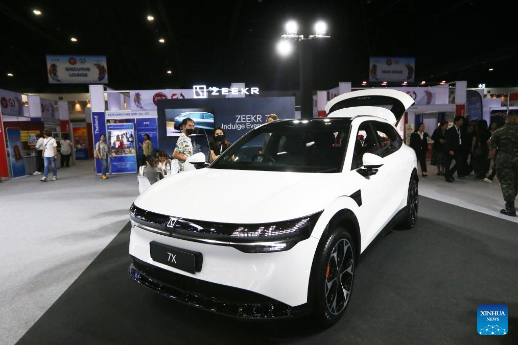 BANGKOK, 27 septiembre, 2025 (Xinhua) -- Imagen del 26 de septiembre de 2025 de personas visitando el estand del fabricante chino de vehículos de nueva energía Zeekr durante la Exposición de Cooperación Tailandia-China 2025, en Bangkok, Tailandia. La exposición comenzó aquí el viernes para celebrar el 50 aniversario de las relaciones diplomáticas entre China y Tailandia, destacando los amplios esfuerzos conjuntos en comercio, inversión, educación y empleo. (Xinhua/Rachen Sageamsak)