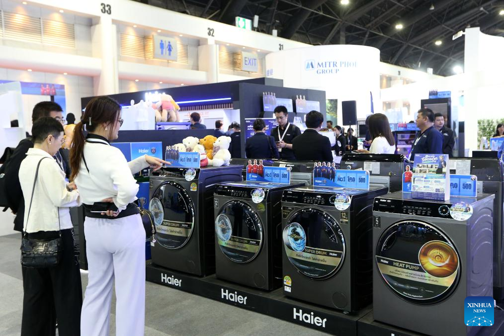 BANGKOK, 27 septiembre, 2025 (Xinhua) -- Imagen del 26 de septiembre de 2025 de personas visitando el estand del fabricante chino de electrodomésticos Haier durante la Exposición de Cooperación Tailandia-China 2025, en Bangkok, Tailandia. La exposición comenzó aquí el viernes para celebrar el 50 aniversario de las relaciones diplomáticas entre China y Tailandia, destacando los amplios esfuerzos conjuntos en comercio, inversión, educación y empleo. (Xinhua/Rachen Sageamsak)