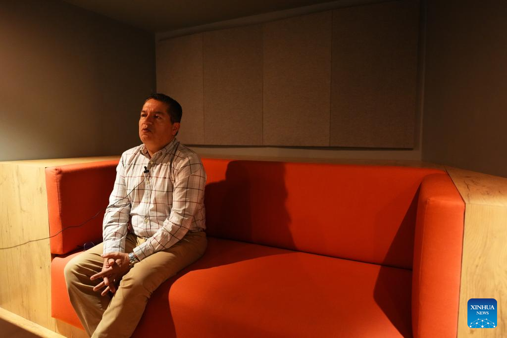 BOGOTA, 27 septiembre, 2025 (Xinhua) -- Imagen del 26 de septiembre de 2025 de Armando Aguilar, gerente de distribución de Cinecolor Films Colombia, hablando durante una entrevista con la Agencia de Noticias Xinhua sobre la película de animación china "Ne Zha 2", en Bogotá, capital de Colombia. Con su arribo a Latinoamérica el 25 de septiembre, los colombianos disfrutan de la exhibición de "Ne Zha 2", la película animada más taquillera de la historia y que ha recaudado de más de 2.000 millones de dólares desde su estreno en China el 29 de enero de 2025. (Xinhua/Andrés Moreno)