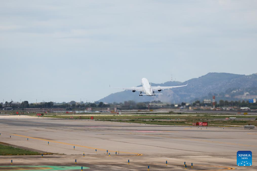 BARCELONA, 27 septiembre, 2025 (Xinhua) -- Imagen el 26 de septiembre de 2025 de un avión de pasajeros de China Eastern Airlines que realiza el vuelo inaugural de Barcelona a Shanghai despegando del aeropuerto de El Prat, en Barcelona, España. La recién lanzada ruta directa de China Eastern Airlines entre Shanghai en China y Barcelona en España realizó su vuelo inaugural el viernes, fortaleciendo la conectividad aérea entre los dos países. (Xinhua/Joan Gosa)