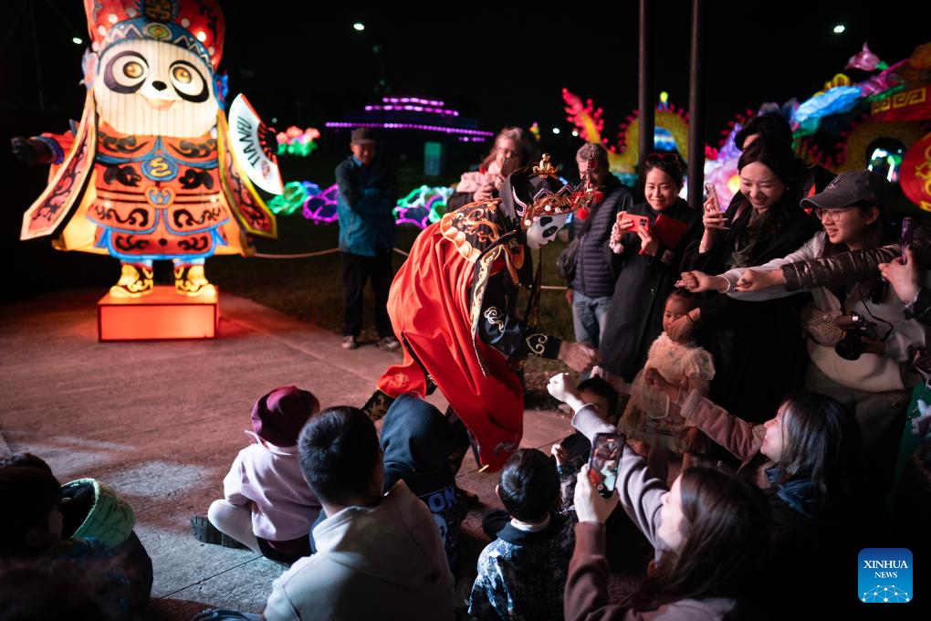 BUENOS AIRES, 27 septiembre, 2025 (Xinhua) -- Imagen del 26 de septiembre de 2025 de un artista interactuando con el público durante la feria de luces tradicionales chinas Tianfu Festival, en el predio ferial Tecnópolis, en la localidad de Villa Martelli, en la periferia noroeste de Buenos Aires, Argentina. El reconocido festival de linternas chinas Tianfu, una atractiva experiencia multisensorial basada en la cultura de China, fue inaugurado en Argentina, llenando de luz y color las noches primaverales en el país sudamericano. (Xinhua/Martín Zabala)