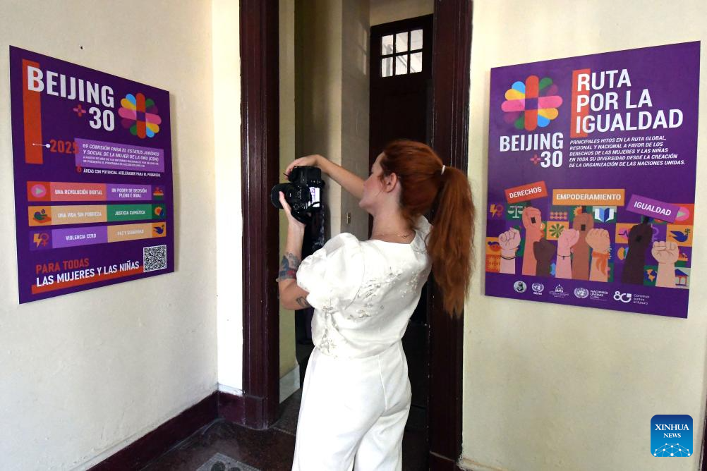 Imagen del 27 de septiembre de 2025 de una mujer tomando fotografías durante el 30º aniversario de la IV Conferencia Mundial sobre la Mujer, en el Instituto Internacional de Periodismo José Martí, en La Habana, capital de Cuba. Cientos de cubanos se reunieron el sábado en La Habana para celebrar el 30º aniversario de la IV Conferencia Mundial sobre la Mujer, cuya realización en Beijing, la capital de China, marcó un hito en el avance de la igualdad de género. (Xinhua/Joaquín Hernández)