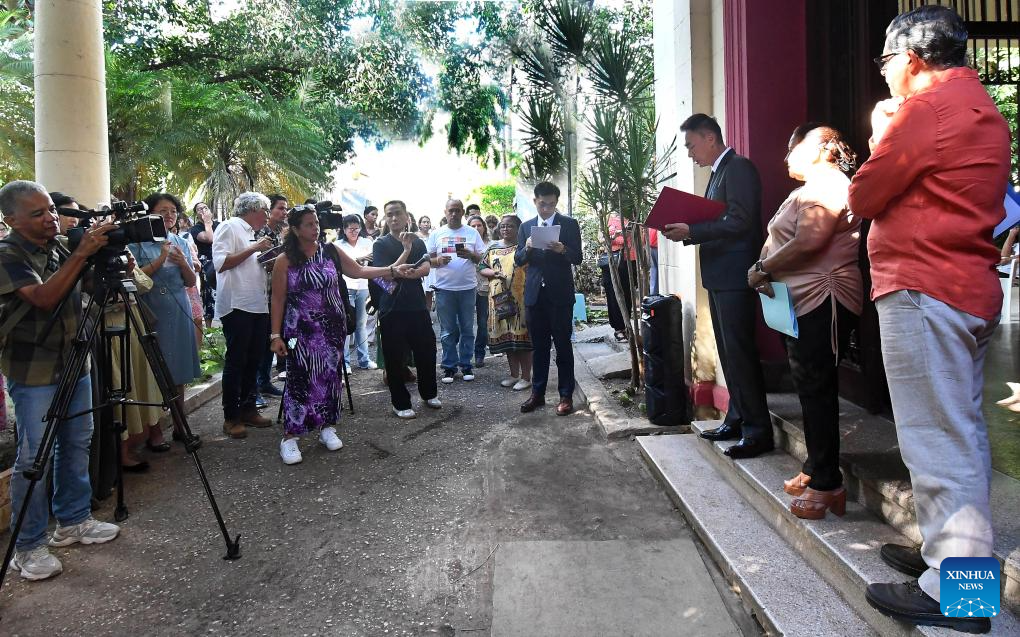 Imagen del 27 de septiembre de 2025 del embajador de China en Cuba, Hua Xin (3-d), pronunciando un discurso en la apertura de la celebración del 30º aniversario de la IV Conferencia Mundial sobre la Mujer, en el Instituto Internacional de Periodismo José Martí, en La Habana, capital de Cuba. Cientos de cubanos se reunieron el sábado en La Habana para celebrar el 30º aniversario de la IV Conferencia Mundial sobre la Mujer, cuya realización en Beijing, la capital de China, marcó un hito en el avance de la igualdad de género. (Xinhua/Joaquín Hernández)