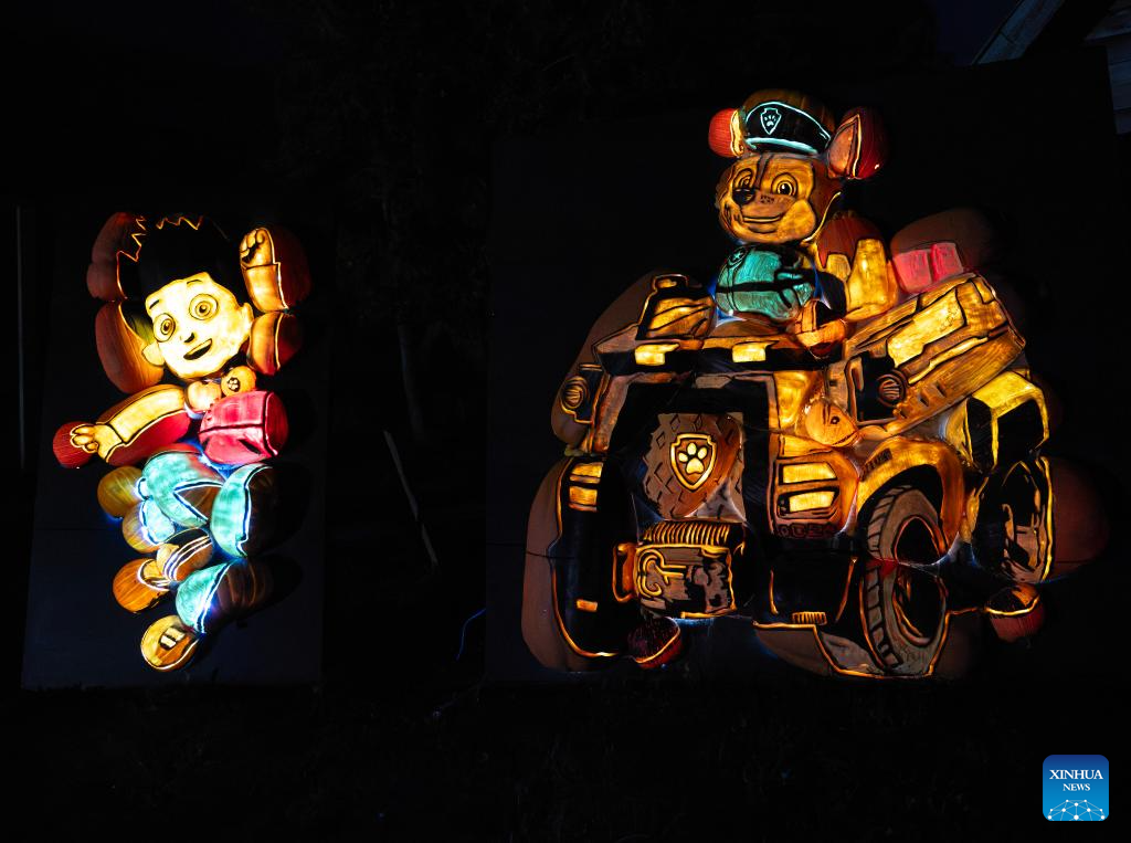 MILTON, 29 septiembre, 2025 (Xinhua) -- Imagen del 28 de septiembre de 2025 de una calabaza tallada vista durante el evento Calabazas Después del Anochecer 2025, en Milton, Ontario, Canadá. Con más de 10 000 calabazas talladas a mano, el evento anual de Halloween al aire libre se celebra aquí del 27 de septiembre al 1 de noviembre de este año. (Xinhua/Zou Zheng)