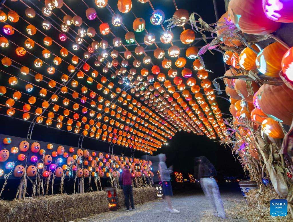 MILTON, 29 septiembre, 2025 (Xinhua) -- Imagen del 28 de septiembre de 2025 de personas visitando el evento Calabazas Después del Anochecer 2025, en Milton, Ontario, Canadá. Con más de 10 000 calabazas talladas a mano, el evento anual de Halloween al aire libre se celebra aquí del 27 de septiembre al 1 de noviembre de este año. (Xinhua/Zou Zheng)