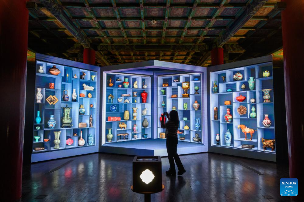 BEIJING, 29 septiembre, 2025 (Xinhua) -- Visitantes invitados observan piezas exhibidas en el Museo del Palacio, en Beijing, capital de China, el 29 de septiembre de 2025. Este año marca el 100 aniversario de la fundación del Museo del Palacio. El lunes, la ceremonia de apertura de la exposición "Un siglo de gestión: de la Ciudad Prohibida al Museo del Palacio", se celebró en el Museo del Palacio en Beijing. (Xinhua/Xu Jiayi)