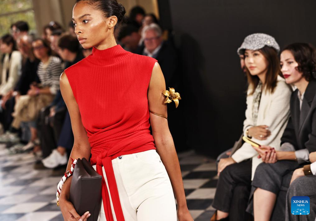 PARIS, 30 septiembre, 2025 (Xinhua) -- Imagen del 29 de septiembre de 2025 de una modelo presentando una creación de las colecciones primavera/verano 2026 de YINER en el evento del Día de la Moda de Shenzhen Futian en París llevado a cabo durante la semana de la moda de París, en París, Francia. (Xinhua/Gao Jing)