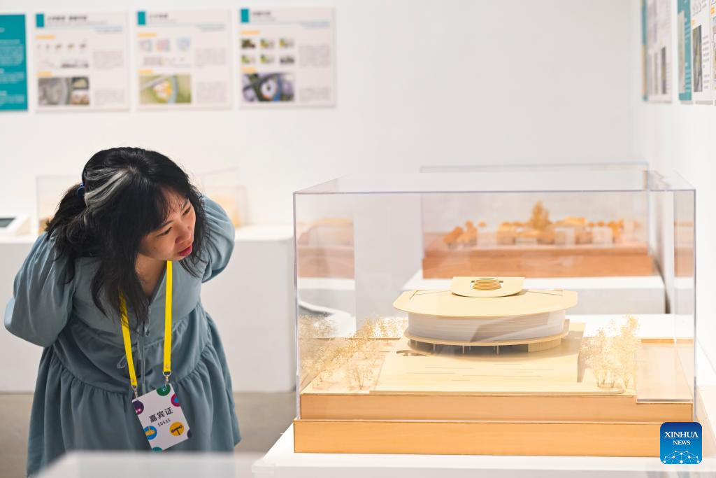 SHANGHAI, 30 septiembre, 2025 (Xinhua) -- Una mujer visita una exposición de la Temporada de Arte del Espacio Urbano de Shanghai 2025, en Shanghai, en el este de China, el 30 de septiembre de 2025. Una exposición de diseño de ciencia y tecnología, una muestra de arte, un espectáculo de drones y un espectáculo de luces están programadas para llevarse a cabo durante el evento. (Xinhua/Chen Haoming)