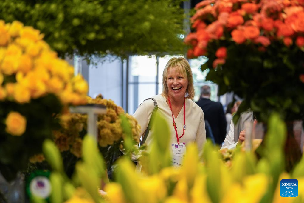BOGOTA, 2 octubre, 2025 (Xinhua) -- Personas observan especies de flores durante la feria internacional Proflora 2025, llevada a cabo en el recinto ferial Corferias, en Bogotá, capital de Colombia, el 2 de octubre de 2025. (Xinhua/Andrés Moreno)