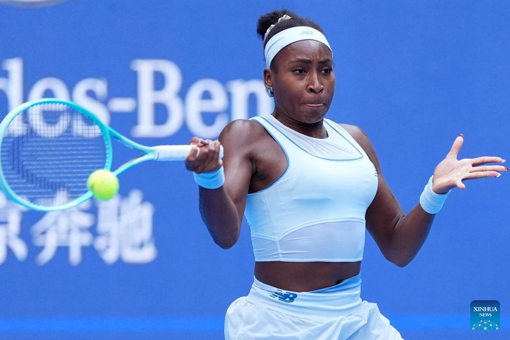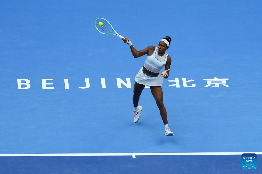 BEIJING, 2 octubre, 2025 (Xinhua) -- Coco Gauff devuelve la pelota durante el partido de cuartos de final de individuales femeninos entre Coco Gauff, de Estados Unidos, y Eva Lys, de Alemania, en el torneo de tenis China Open 2025, en Beijing, China, el 2 de octubre de 2025. (Xinhua/Xie Han)