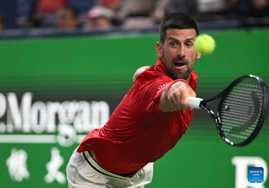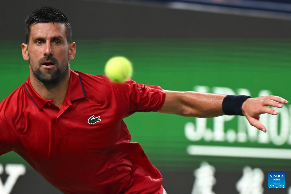 SHANGHAI, 3 octubre, 2025 (Xinhua) -- Novak Djokovic devuelve la pelota durante el partido de treintaidosavos de final de individuales masculinos entre Novak Djokovic, de Serbia, y Borna Coric, de Croacia, en el torneo de tenis Masters de Shanghai del ATP World Tour, en Shanghai, en el este de China, el 3 de octubre de 2025. (Xinhua/Chen Haoming)
