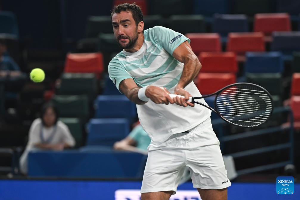SHANGHAI, 3 octubre, 2025 (Xinhua) -- Borna Coric devuelve la pelota durante el partido de treintaidosavos de final de individuales masculinos entre Novak Djokovic, de Serbia, y Borna Coric, de Croacia, en el torneo de tenis Masters de Shanghai del ATP World Tour, en Shanghai, en el este de China, el 3 de octubre de 2025. (Xinhua/Chen Haoming)