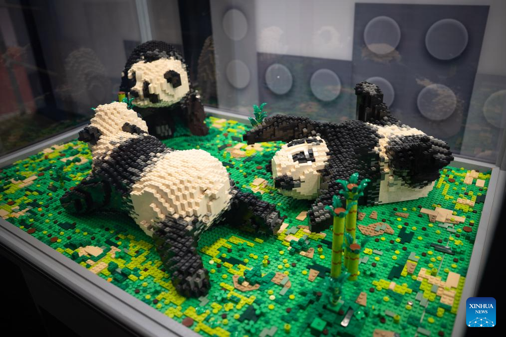 VARSOVIA, 4 octubre, 2025 (Xinhua) -- Imagen del 3 de octubre de 2025 de modelos de pandas construidos con piezas de Lego exhibidos en una exposición de Lego, en el Estadio Nacional, en Varsovia, Polonia. La exposición de Lego se inauguró aquí el viernes. (Xinhua/Jaap Arriens)