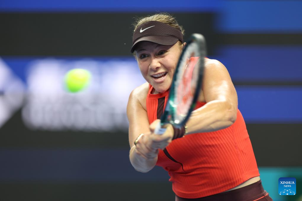BEIJING, 5 octubre, 2025 (Xinhua) -- Amanda Anisimova devuelve la pelota durante el partido final de individuales femeninos entre Amanda Anisimova, de Estados Unidos, y Linda Noskova, de República Checa, en el torneo de tenis China Open 2025, en Beijing, China, el 5 de octubre de 2025. (Xinhua/Bai Xuefei)