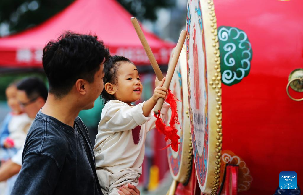 BEIJING, 6 octubre, 2025 (Xinhua) -- Un niño toca un tambor, en Tengzhou, en la provincia de Shandong, en el este de China, el 6 de octubre de 2025. A medida que convergen las vacaciones por el Día Nacional de China y el Festival del Medio Otoño, las actividades culturales, las activas redes de transporte y las innovadoras escenas de consumo del país están pintando un panorama vívido de resiliencia económica y potencial de crecimiento. (Xinhua/Li Zhijun)