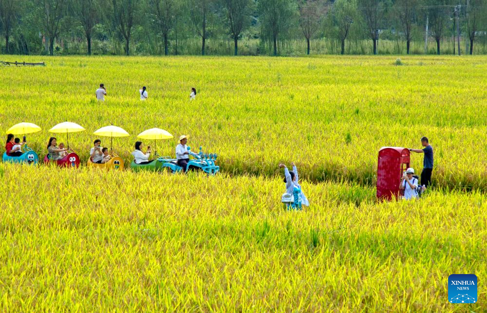 BEIJING, 6 octubre, 2025 (Xinhua) -- Vista aérea del 5 de octubre de 2025 de turistas en un punto escénico, en la ciudad de Xiangyang, en la provincia de Hubei, en el centro de China. A medida que convergen las vacaciones por el Día Nacional de China y el Festival del Medio Otoño, las actividades culturales, las activas redes de transporte y las innovadoras escenas de consumo del país están pintando un panorama vívido de resiliencia económica y potencial de crecimiento. (Xinhua/Yang Dong)