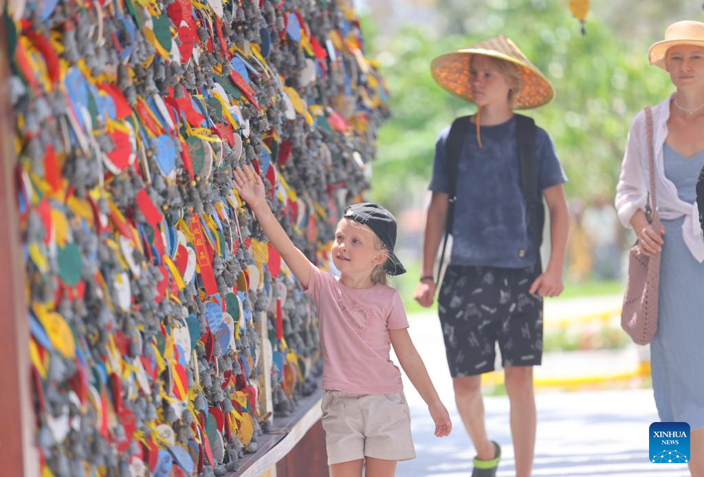 BEIJING, 7 octubre, 2025 (Xinhua) -- Turistas visitan la Zona Turística Cultural de Nanshan, en Sanya, en la provincia de Hainan, en el sur de China, el 7 de octubre de 2025. Turistas de todo el país no muestran señales de que su entusiasmo disminuya a medida que las vacaciones por el Día Nacional y el Festival del Medio Otoño llegan a su fin.. (Xinhua/Chen Wenwu)