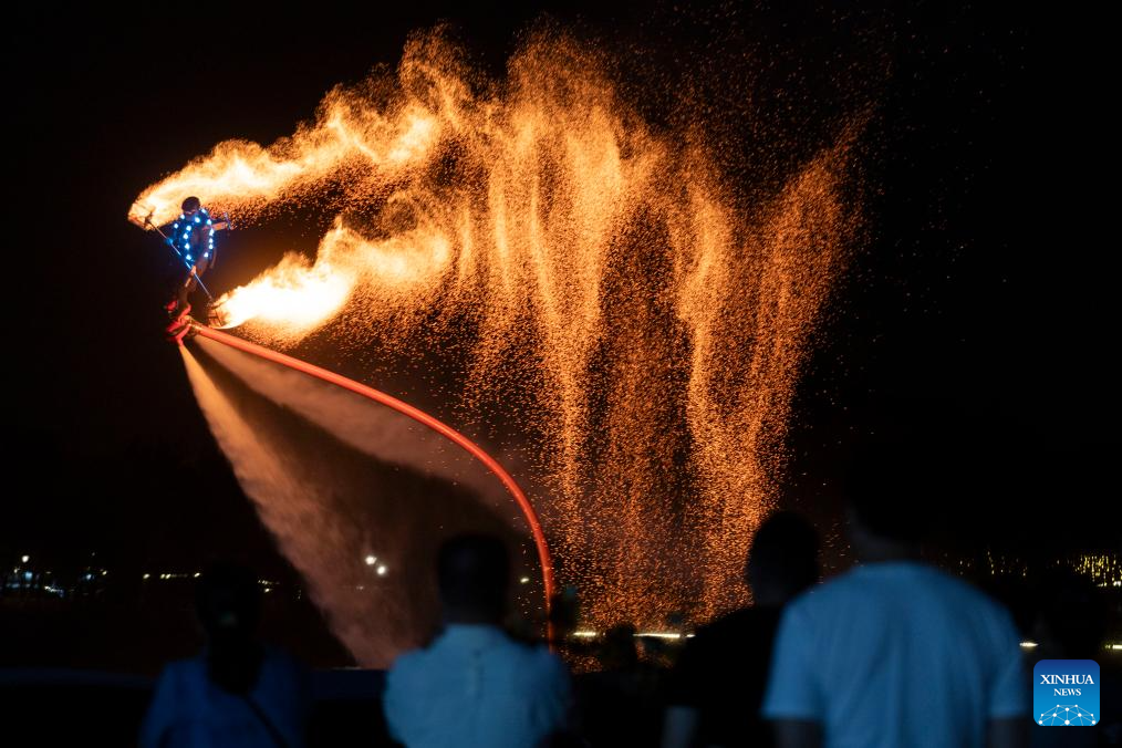 BEIJING, 7 octubre, 2025 (Xinhua) -- Personas observan un espectáculo en un parque, en Shanghai, en el este de China, el 7 de octubre de 2025. Turistas de todo el país no muestran señales de que su entusiasmo disminuya a medida que las vacaciones por el Día Nacional y el Festival del Medio Otoño llegan a su fin. (Xinhua/Wang Xiang)