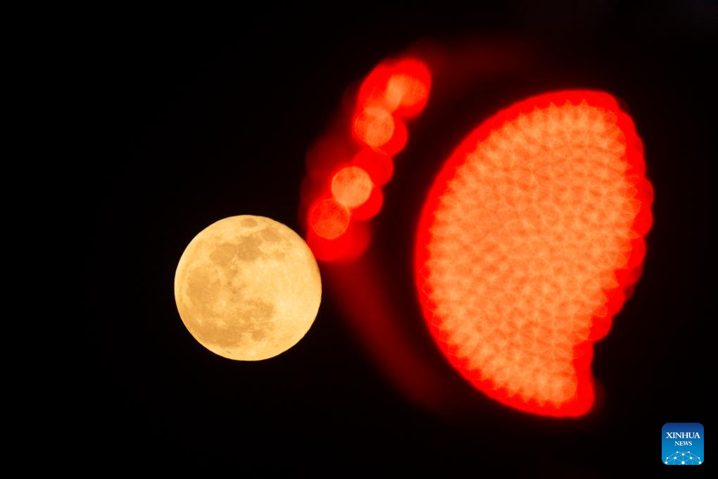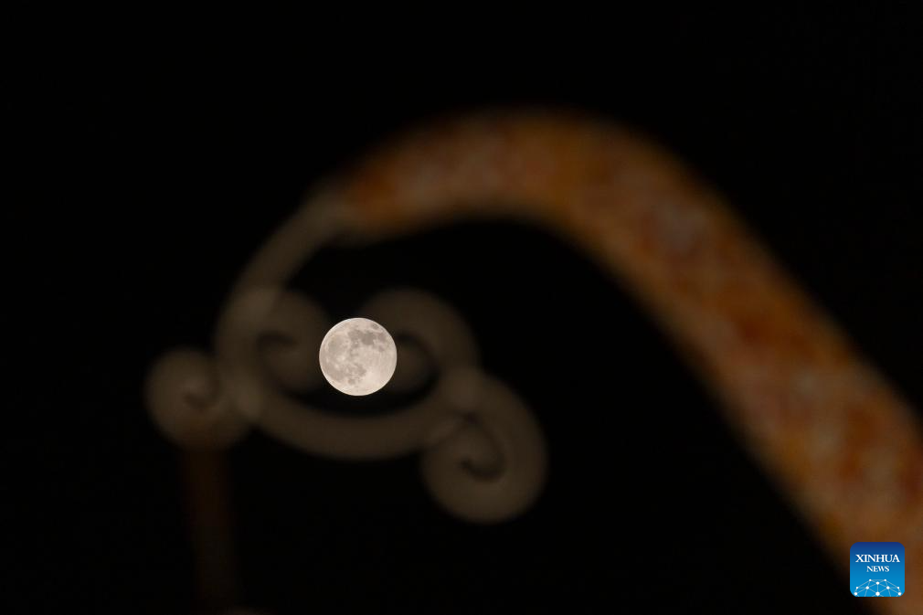 YANGON, 7 octubre, 2025 (Xinhua) -- La luna llena es vista en Yangon, Myanmar, el 7 de octubre de 2025. (Xinhua/Myo Kyaw Soe)