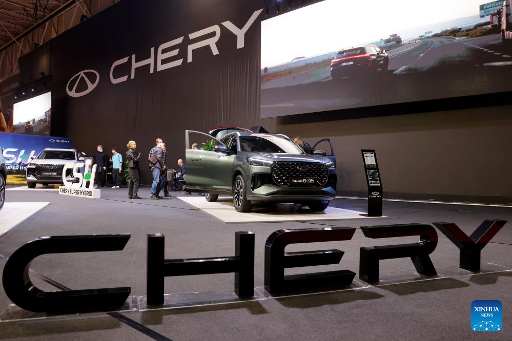 BUCAREST, 8 octubre, 2025 (Xinhua) -- Imagen del 7 de octubre de 2025 de visitantes observando un vehículo chino Chery Tiggo 8 durante el 22.º Salón del Automóvil y Accesorios de Bucarest, en Bucarest, Rumania. El evento comenzó aquí el martes y se permanecerá hasta el 12 de octubre, participando alrededor de 30 empresas internacionales exhibiendo vehículos convencionales, híbridos y eléctricos. (Xinhua/Cristian Cristel)