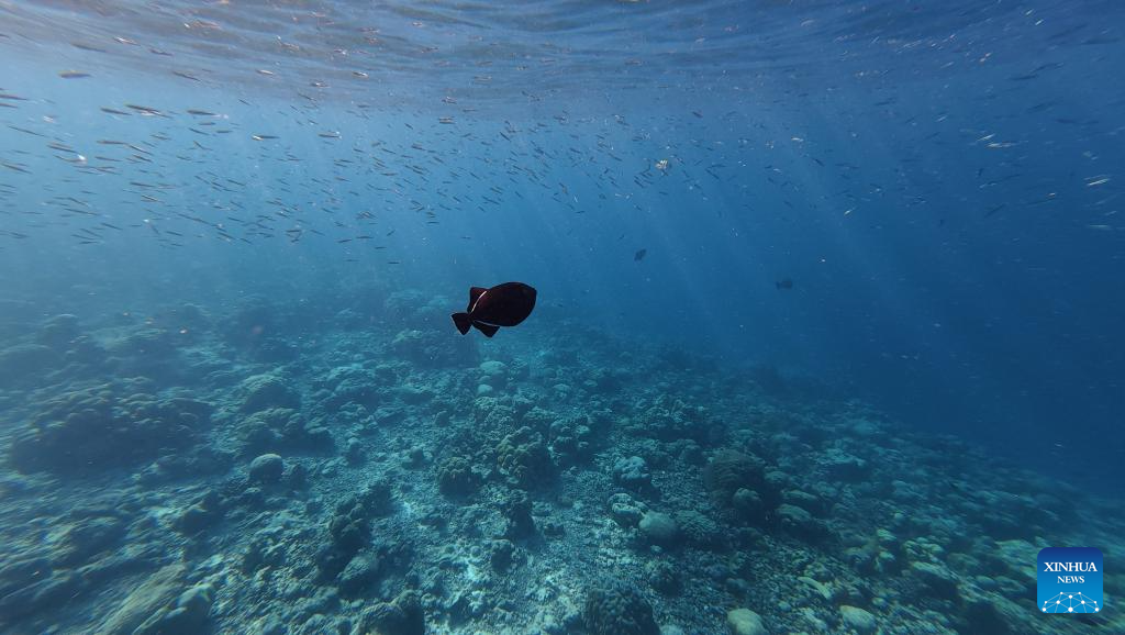 MALE, 9 octubre, 2025 (Xinhua) -- Imagen del 5 de octubre de 2025 de un pez tropical bajo el mar, en el Atolón Noonu, Maldivas. (Xinhua/Wu Yue)