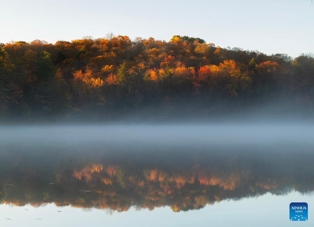 HUNTSVILLE, 10 octubre, 2025 (Xinhua) -- Imagen del 9 de octubre de 2025 del paisaje de otoño en un parque, en Huntsville, en Ontario, Canadá. (Xinhua/Zou Zheng)