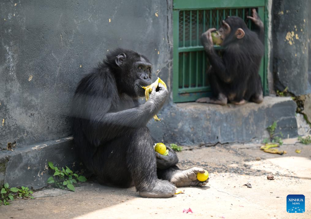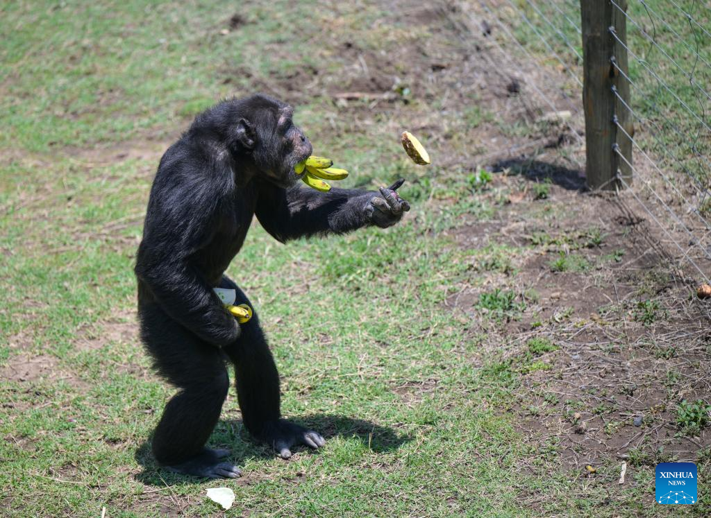 LAIKIPIA, 11 octubre, 2025 (Xinhua) -- Imagen del 7 de octubre de 2025 de un chimpancé comiendo plátano en el Santuario de Chimpancés Ol Pejeta, en el condado de Laikipia, Kenia. Establecido en 1993, el Santuario de Chimpancés Ol Pejeta de 250 acres ubicado en el condado de Laikipia, alberga actualmente a 29 chimpancés. (Xinhua/Yang Guang)