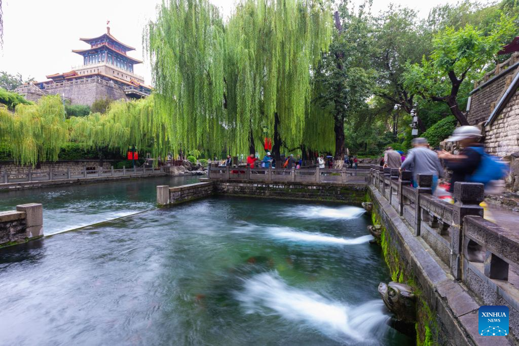 BEIJING, 11 octubre, 2025 (Xinhua) -- Turistas visitan el manantial Heihu, en Jinan, en la provincia de Shandong, en el este de China, el 11 de octubre de 2025. (Xinhua/Xu Zhou)