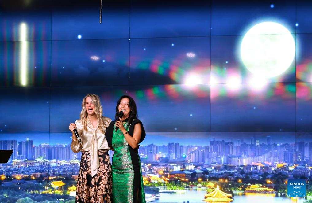 ROMA, 11 octubre, 2025 (Xinhua) -- Imagen del 10 de octubre de 2025 de entusiastas locales de la cultura china realizando una presentación durante una feria de atracciones con temática del Festival de Medio Otoño en la Escuela Internacional Marymount, en Roma, Italia. La feria de atracciones se llevó a cabo aquí el viernes, donde estudiantes y residentes locales disfrutaron de una variedad de actividades y espectáculos culturales chinos presentados por entusiastas locales de la cultura china. (Xinhua/Li Jing)
