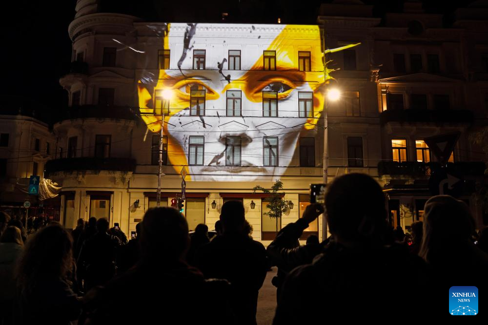 BUCAREST, 11 octubre, 2025 (Xinhua) -- Imagen del 10 de octubre de 2025 de una proyección de arte lumínico vista en un edificio durante el Festival Spotlight, en Bucarest, Rumanía. (Xinhua/Cristian Cristel)