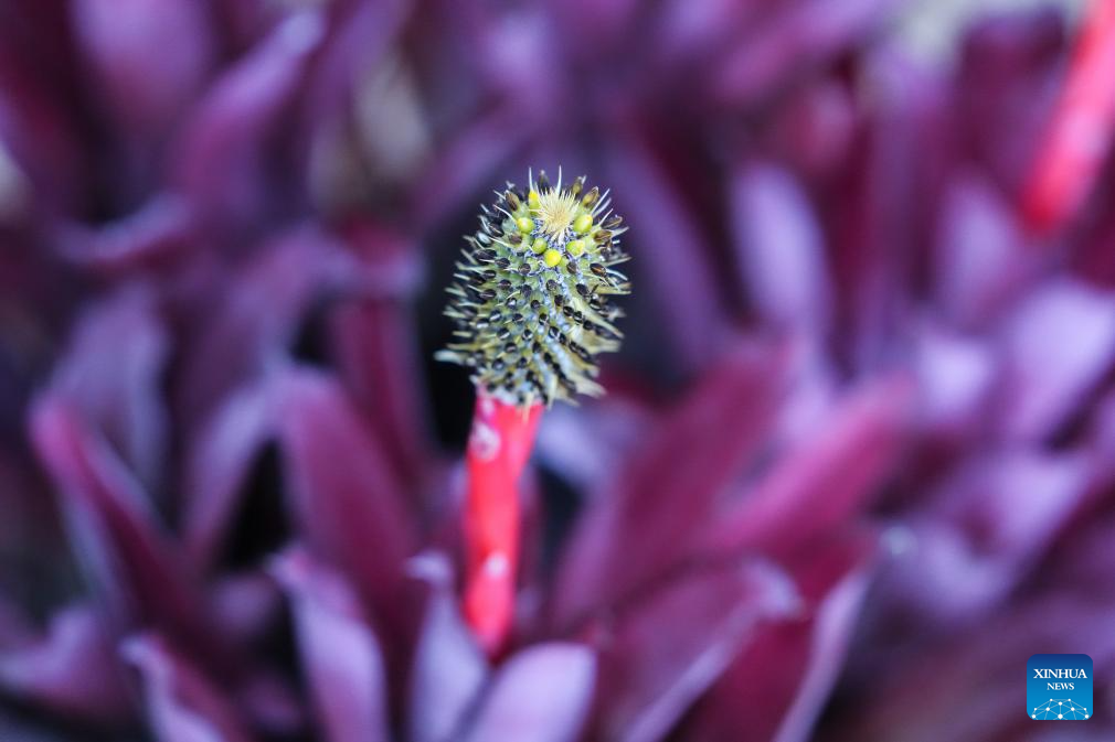 BOGOTA, 12 octubre, 2025 (Xinhua) -- Imagen del 11 de octubre de 2025 de una planta exhibida en la IV edición de la Exposición "Bromelias: refugios de vida" en el Jardín Botánico José Celestino Mutis, en Bogotá, capital de Colombia. Con el título "Bromelias: refugios de vida", comenzó el viernes la IV edición de la exposición sobre las particularidades de estas plantas tropicales en el Jardín Botánico de Bogotá, evento que se enmarca en la celebración de los 70 años de este espacio dedicado a la divulgación científica y botánica en la capital colombiana. (Xinhua/Andrés Moreno)