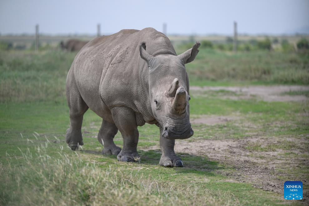 NAIROBI, 12 octubre, 2025 (Xinhua) -- Imagen del 7 de octubre de 2025 de la rinoceronte blanca del norte "Fatu" en la reserva Ol Pejeta, en el distrito de Laikipia, Kenia. "Najin" y "Fatu" son los dos últimos rinocerontes blancos del norte que quedan en la Tierra. Ahora viven en la reserva Ol Pejeta, en el distrito de Laikipia, Kenia. (Xinhua/Yang Guang)