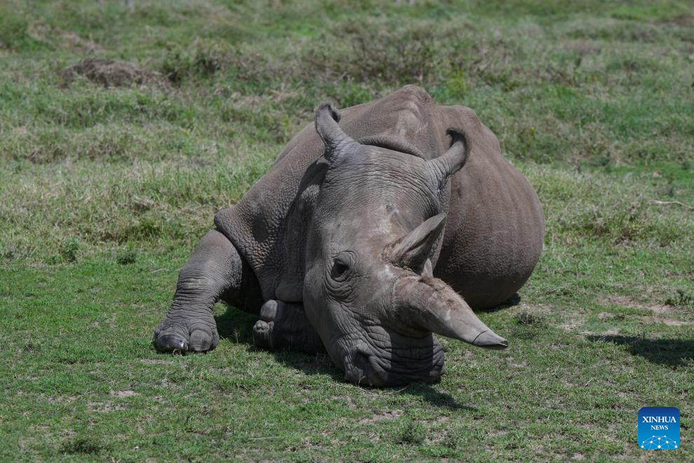NAIROBI, 12 octubre, 2025 (Xinhua) -- Imagen del 7 de octubre de 2025 de la rinoceronte blanca del norte "Najin" en la reserva Ol Pejeta , en el distrito de Laikipia, Kenia. "Najin" y "Fatu" son los dos últimos rinocerontes blancos del norte que quedan en la Tierra. Ahora viven en la reserva Ol Pejeta, en el distrito de Laikipia, Kenia. (Xinhua/Yang Guang)