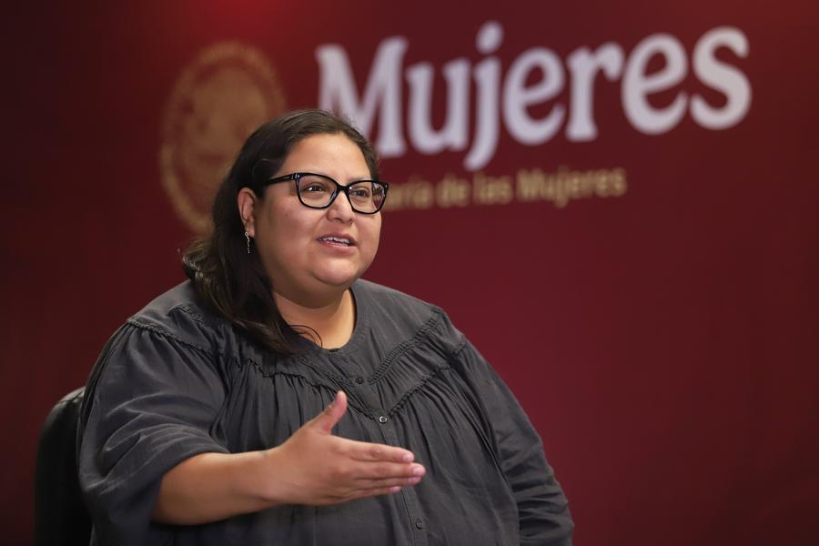 Imagen del 3 de octubre de 2025 de Citlalli Hernández Mora, secretaria de las Mujeres mexicana, hablando en una entrevista con Xinhua, en la Ciudad de México, capital de México. (Xinhua/Daniel Augusto)