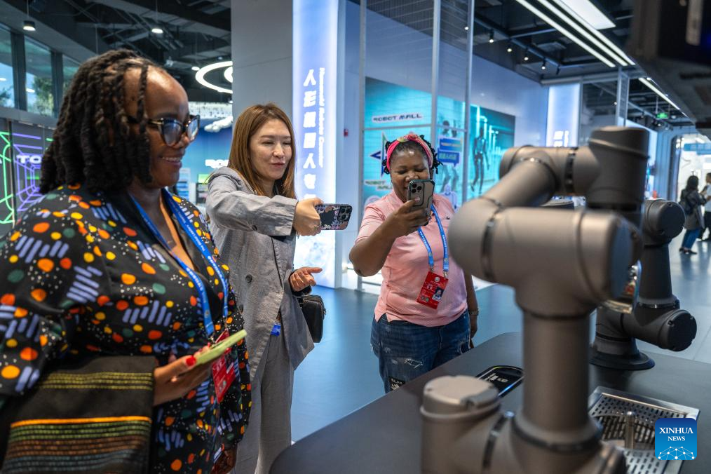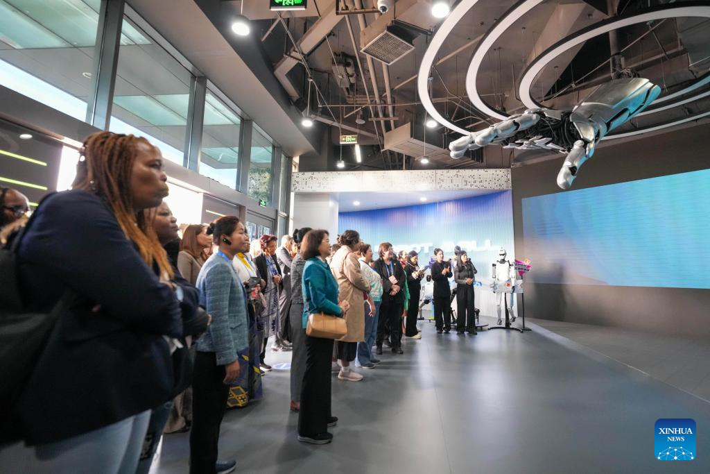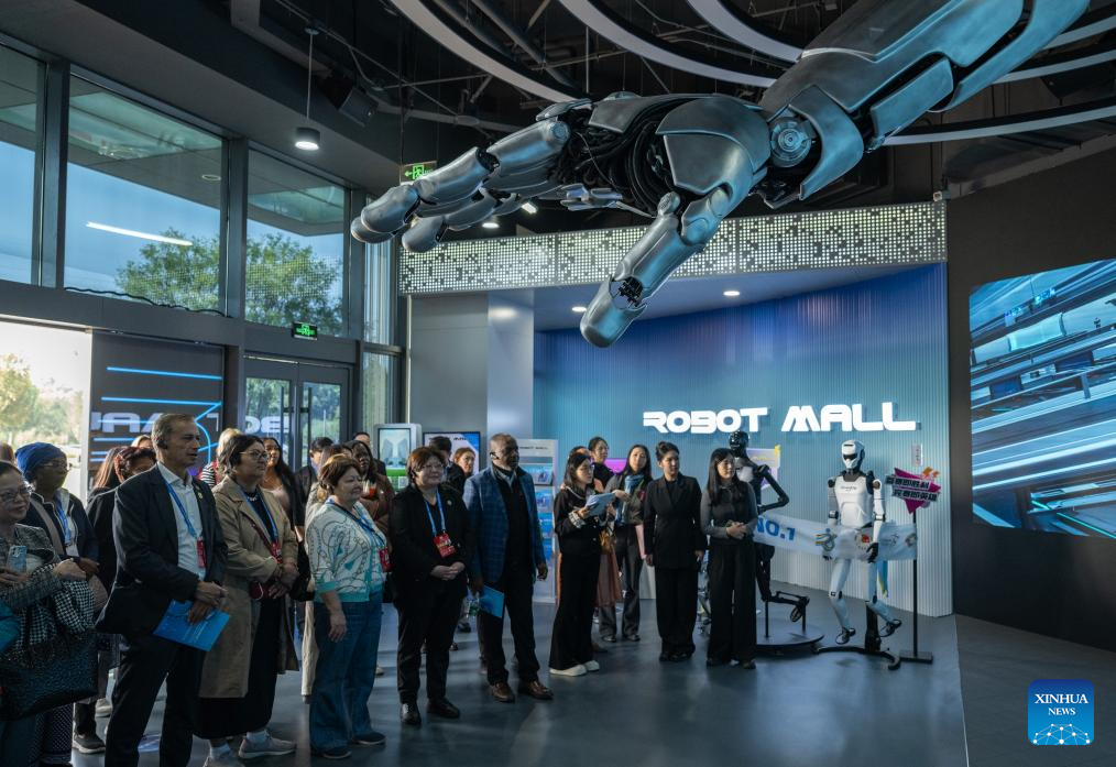 BEIJING, 14 octubre, 2025 (Xinhua) -- Representantes, quienes se encuentran en Beijing para la Conferencia de Líderes Mundiales sobre la Mujer, visitan el Mundo de los Robots de Beijing, en Beijing, capital de China, el 14 de octubre de 2025. (Xinhua/Du Zixuan)