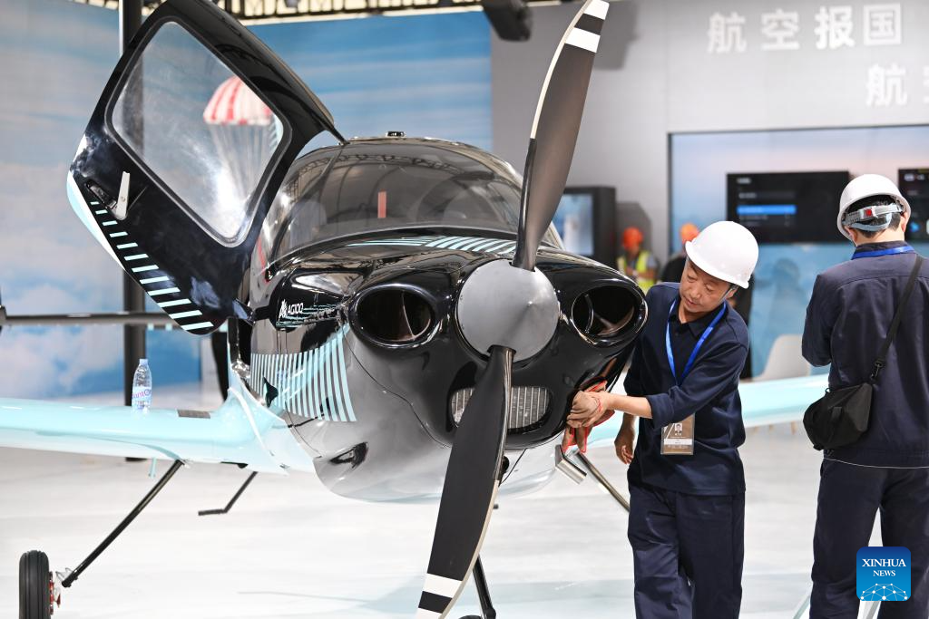 TIANJIN, 14 octubre, 2025 (Xinhua) -- Un expositor se prepara para la próxima 7ª Exposición de Helicópteros de China, en Tianjin, en el norte de China, el 14 de octubre de 2025. La exposición está programada para celebrarse del 16 al 19 de octubre en Tianjin. (Xinhua/Sun Fanyue)