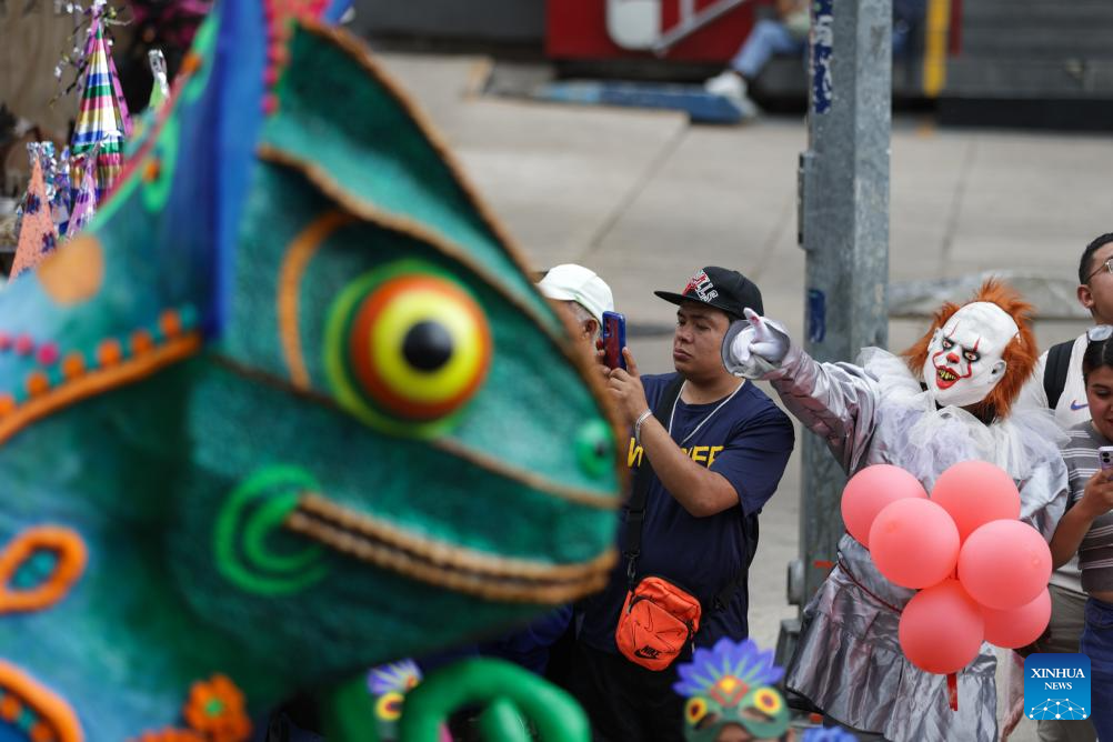 CIUDAD DE MEXICO, 18 octubre, 2025 (Xinhua) -- Un hombre disfrazado de alebrije es visto durante el 17 Desfile y Concurso de Alebrijes Monumentales del Museo de Arte Popular, en la Ciudad de México, capital de México, el 18 de octubre de 2025. (Xinhua/Francisco Cañedo)