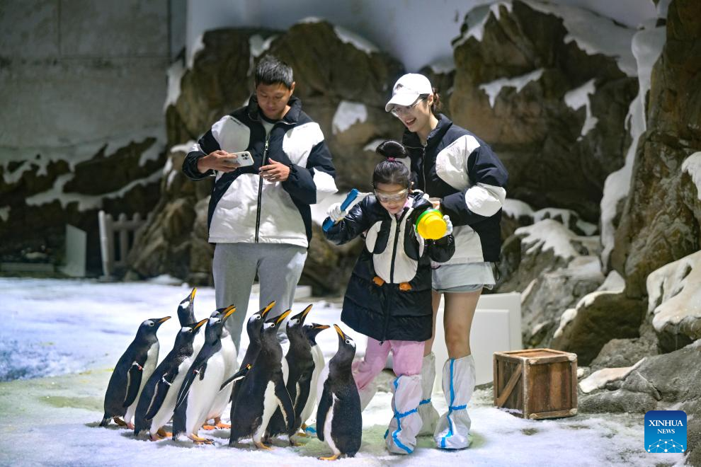 HAIKOU, 19 octubre, 2025 (Xinhua) -- Imagen del 18 de octubre de 2025 de turistas observando un espectáculo bajo el agua en el Hainan Ocean Paradise Resort, en el distrito autónomo li de Lingshui, en la provincia de Hainan, en el sur de China. Muchos turistas optan por viajar fuera de temporada a la provincia insular china de Hainan, un popular destino turístico, debido a la bajada de precios del transporte y el alojamiento tras el feriado del Día Nacional de China. (Xinhua/Guo Cheng)