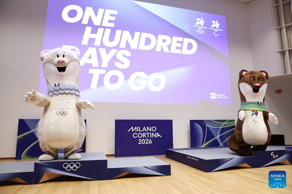 MILAN, 30 octubre, 2025 (Xinhua) -- Imagen del 29 de octubre de 2025 de las mascotas Tina (i) y Milo vistas en los podios recién develados para los Juegos Olímpicos y Paralímpicos de Milán Cortina 2026 durante una ceremonia para marcar los 100 días para la inauguración de los Juegos Olímpicos de Invierno de Milán Cortina 2026, en el Palazzo Lombardia, en Milán, Italia. Una ceremonia para marcar los 100 días para la inauguración de los Juegos Olímpicos de Invierno de Milán Cortina 2026 se llevó a cabo en el Palazzo Lombardia en Milán, en donde los organizadores develaron los podios oficiales de los Juegos Olímpicos y Paralímpicos y presentaron a 12 "portadores de la antorcha digital", que simboliza el inicio de la etapa final de los preparativos para el evento. (Xinhua/Li Jing)
