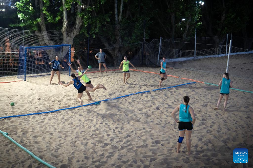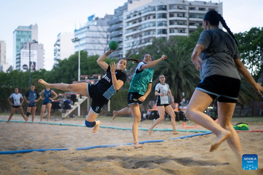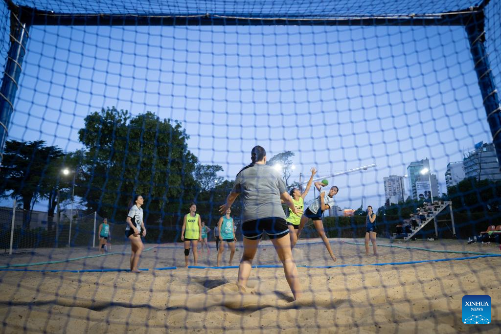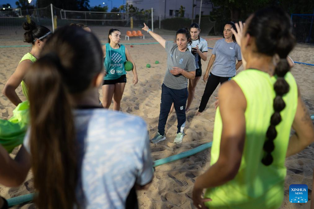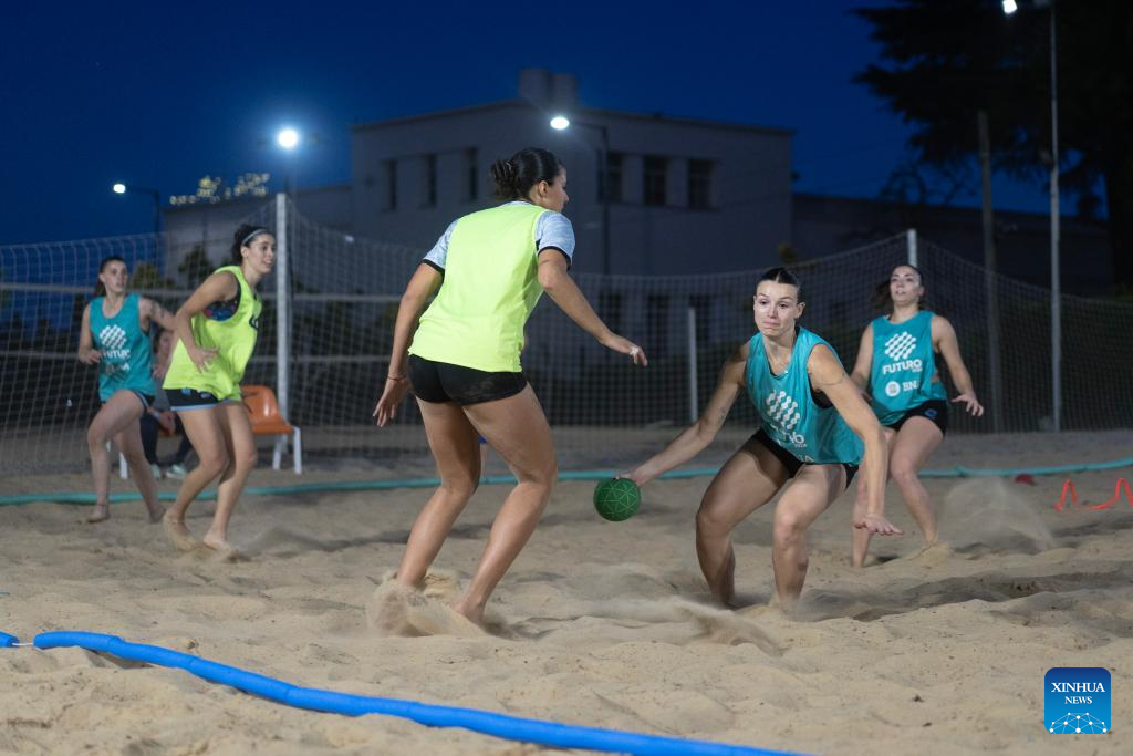 BUENOS AIRES, 31 octubre, 2025 (Xinhua) -- Imagen del 21 de octubre de 2025 de integrantes del seleccionado argentino femenil de balonmano de playa participando en un entrenamiento, en el Centro Nacional de Alto Rendimiento Deportivo, en la ciudad de Buenos Aires, capital de Argentina. La goleadora del seleccionado argentino femenil de balonmano de playa, Gisella Bonomi, afirmó que lo más destacable de sus dos visitas a China fue la calidez con la que les recibió la gente. (Xinhua/Martín Zabala)