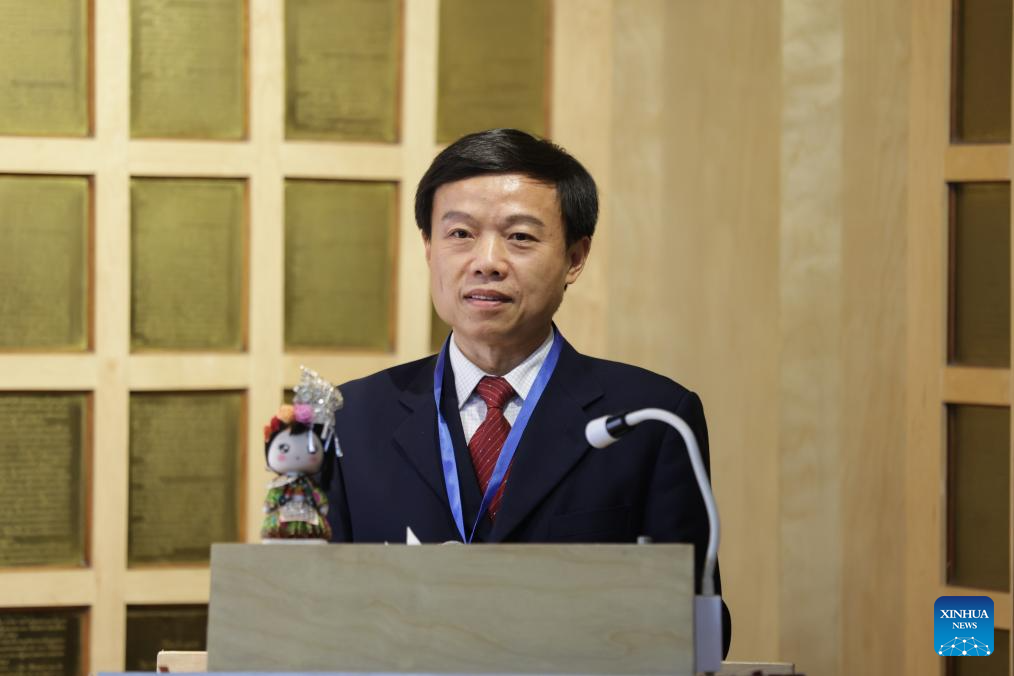 Imagen del 4 de noviembre de 2025 del director del Centro Cultural de China en México, Shi Yuewen, hablando durante el Intercambio Cultural y Cinematográfico "Guizhou Multicolor", en el Museo Casa de Carranza, en la Ciudad de México, capital de México. El Museo Casa de Carranza de la capital mexicana acogió el martes el Intercambio Cultural y Cinematográfico "Guizhou Multicolor", en el que se proyectaron documentales que mostraron la riqueza natural, cultural y social de una de las provincias más diversas de China. (Xinhua/Francisco Cañedo)
