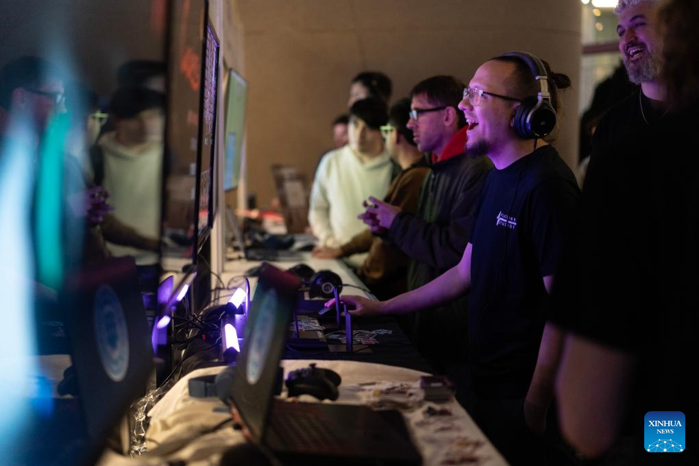 BUENOS AIRES, 7 noviembre, 2025 (Xinhua) -- Un asistente juega un videojuego de realidad virtual durante la 23 edición de la Exposición de Videojuegos Argentina en la Plaza Seca del Palacio Libertad, en la ciudad de Buenos Aires, capital de Argentina, el 7 de noviembre de 2025. (Xinhua/Martín Zabala)