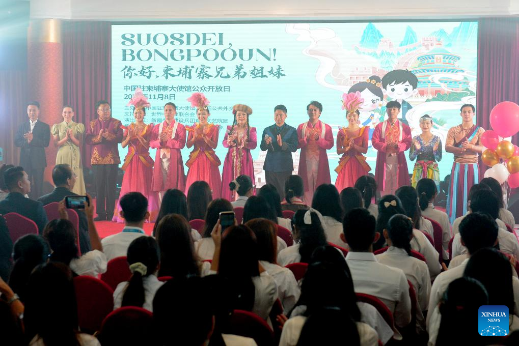 PHNOM PENH, 8 noviembre, 2025 (Xinhua) -- Imagen del 8 de noviembre de 2025 de una escena durante una jornada de puertas abiertas en la Embajada de China en Camboya, en Phnom Penh, Camboya. La Embajada de China en Camboya organizó el sábado una jornada de puertas abiertas, dando la bienvenida a cientos de jóvenes camboyanos. El evento contó con una variedad de actividades como presentaciones culturales, gastronomía y caligrafía chinas, entre otras. (Xinhua/Phearum)